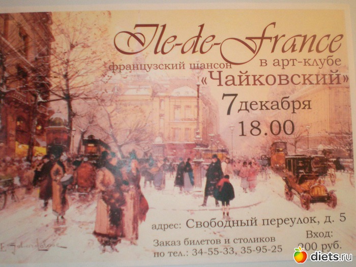 Сегодня у меня был вечер французского шансона Я посетила концерт тверской группы "Ile-de-France" В русской транскрипции это звучит как Иль-де-Франс, это центральный регион Франции, административным центром которого является Париж Но для группы это название имеет и второе значение, дело в том, что все участники группы (кроме скрипачки ) носят имя Илья...
