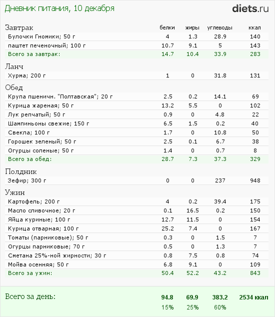 по совету в книге решила сегодня каллории посчитать