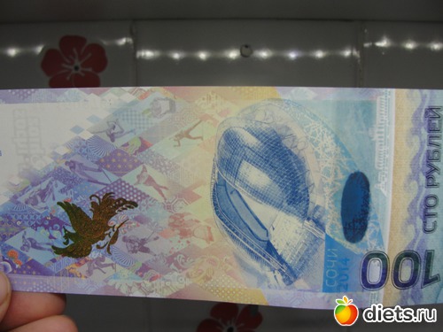 Мужу его сотрудник презентовал, как подарок к новому году, новенькую 100 рублевую олимпийскую купюру - я в восторге! У меня большой интерес к необычным банкнотам, но даже незаинтересованным она очень приглянулась - дизайнеры постарались, молодцы! Мы бы ее только по телевизору и видели, если бы жена этого парня не работала в банке. Как рассказали, в банки поступили небольшие партии этих денег, и чем меньше отделение, тем количество скромнее. Сотрудники, разумеется, сразу разобрали этот клад - кто на сувениры, кто для заработка. Сейчас за эту сотню можно до 2500 руб. выручить. Если честно, при всей моей любви, не понимаю я такого фанатизма до обычной бумаги, красивой, но бумаге. Потом главные отделения, когда там у них все закончилось, стали в приказном порядке отзывать к себе эти выданные деньги, под разными предлогами..
