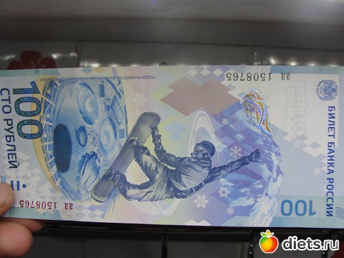 Мужу его сотрудник презентовал, как подарок к новому году, новенькую 100 рублевую олимпийскую купюру - я в восторге! У меня большой интерес к необычным банкнотам, но даже незаинтересованным она очень приглянулась - дизайнеры постарались, молодцы! Мы бы ее только по телевизору и видели, если бы жена этого парня не работала в банке. Как рассказали, в банки поступили небольшие партии этих денег, и чем меньше отделение, тем количество скромнее. Сотрудники, разумеется, сразу разобрали этот клад - кто на сувениры, кто для заработка. Сейчас за эту сотню можно до 2500 руб. выручить. Если честно, при всей моей любви, не понимаю я такого фанатизма до обычной бумаги, красивой, но бумаге. Потом главные отделения, когда там у них все закончилось, стали в приказном порядке отзывать к себе эти выданные деньги, под разными предлогами..