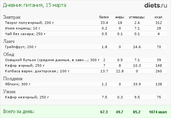 Вчера составляла меню,еле вписалась,а сегодня еле набрала 1000ккал,наверно после завтрака-сыта