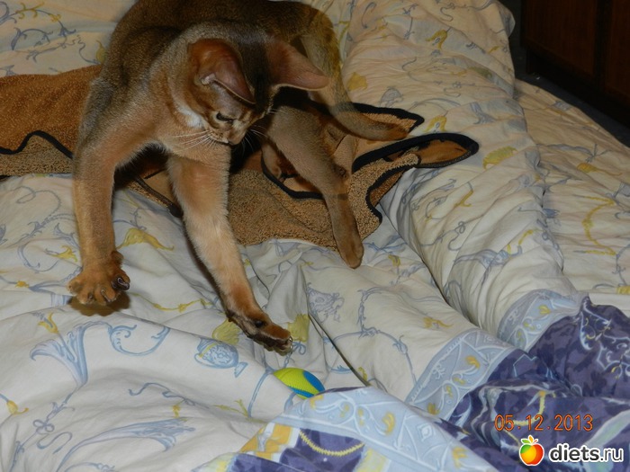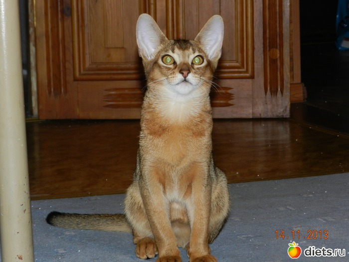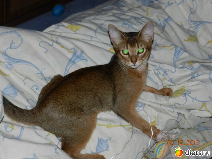 абиссинцы - средняя, даже мелкая порода, с тонким костяком и вытянутыми линиями. Он и должен быть изящным, поджарым и грациозным