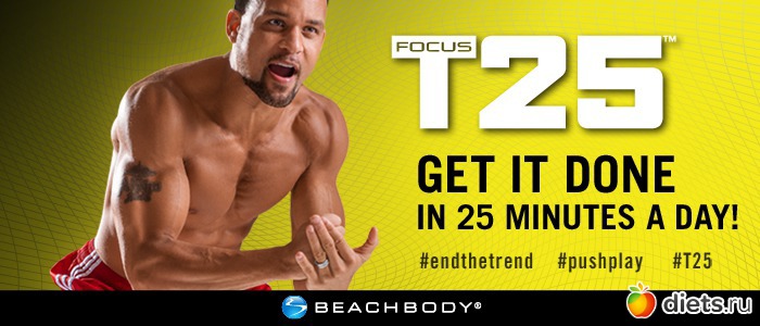 Focus T25 от Шона Ти - достаточно интенсивная программа, с которой не стоит начинать свое знакомство с фитнесом. Как и в любой другой программе здесь есть и облегченный вариант, но, как мне кажется, лучше начать все же с чего-то другого, чтобы потом можно было насладиться всею прелестью этой тренировки.