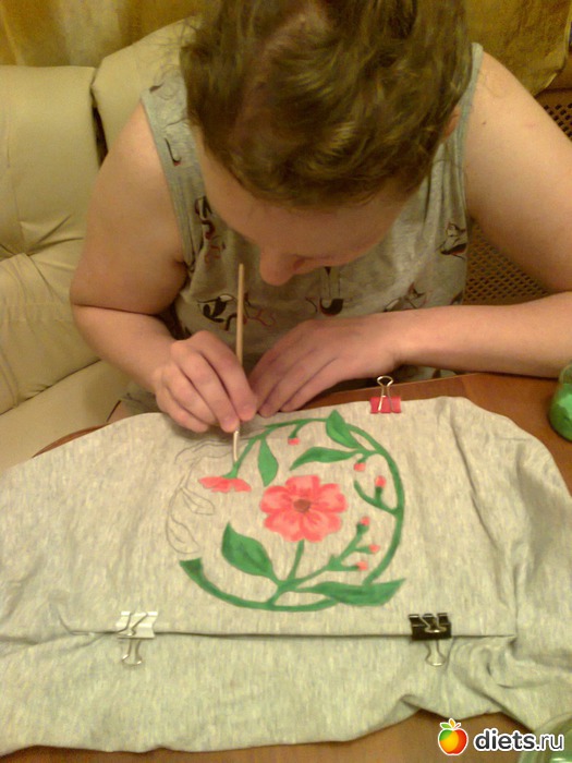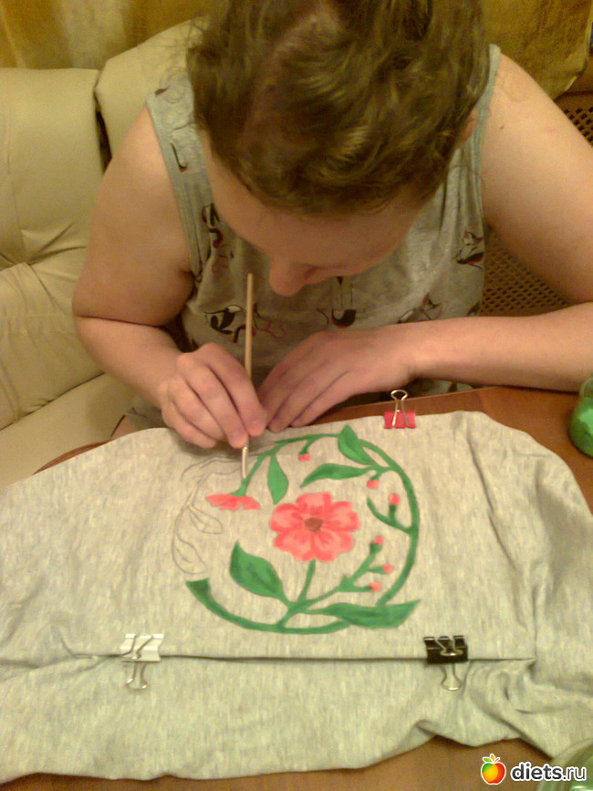 Решив, что преподаватель меня не устраивает, я поехала и купила краски для ткани и кисточку.