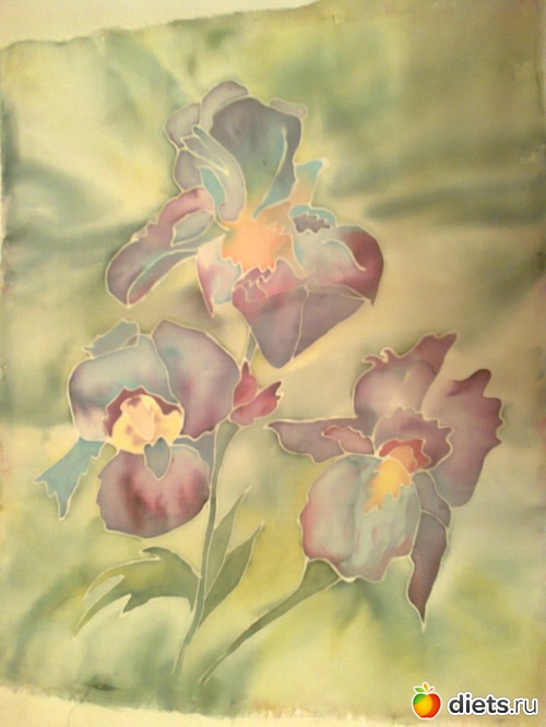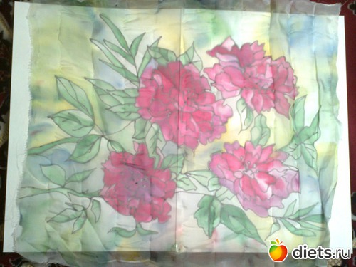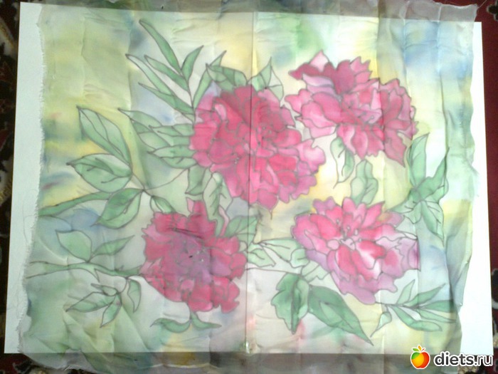 , это по шелковой тряпочке рисуют красками, потом небольшие манипуляции… и все красивый платочек ручной работы готов…