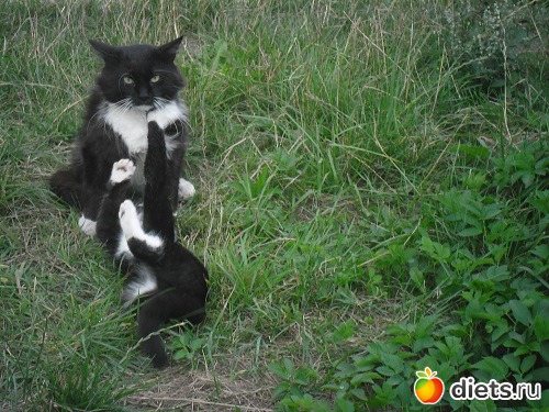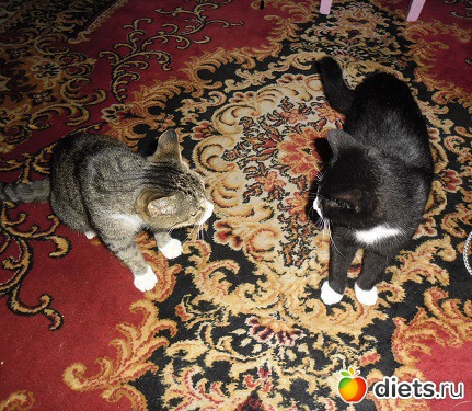 Вот смотри, Лупоня в детстве с папой, он приходил его навещать. и что интересно, у соседей кот - копия наш Лупоня. я издалека даже путаю их.