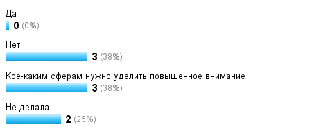 И теперь самое важное. Нужно, обдумывая каждую составляющую жизни, сказать себе честно, насколько вы удовлетворены и реализованы в ней в процентном отношении. Понятно, что 100% - это полное удовлетворение и менять или улучшать здесь ничего не нужно (интересно, найдется ли такой человек).