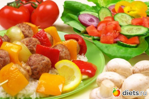 итак, на ужин можно съесть кусочек нежирного мяса, рыбы или птицы размером и толщиной как ваша ладошка без пальцев;
