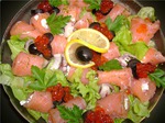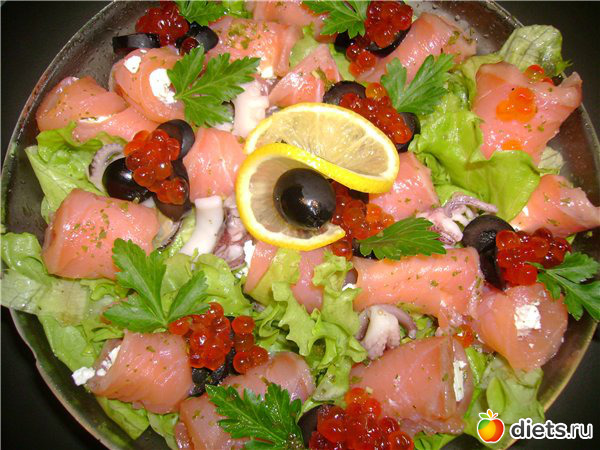 Салат Фантазия С креветками, грибами и сыром моцарелла. (заправка оливковое масло)