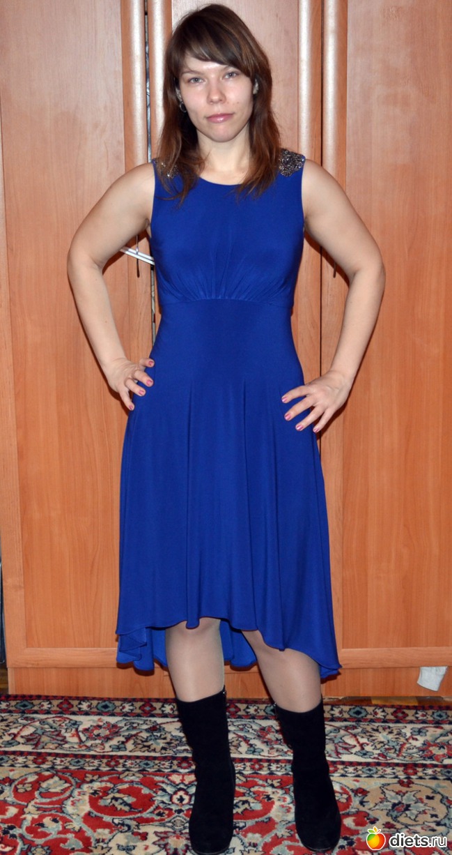 Вы такая хорошенькая в этом платюшке, а обе пары туфель только все портят. Во-первых, они действительно вам большие и дело даже не в вашем удобстве, а в том, что это сильно видно со стороны. А во-вторых, на мой вкус - они абсолютно не подходят к платью. Может поищите еще, а? Что-нибудь понежнее