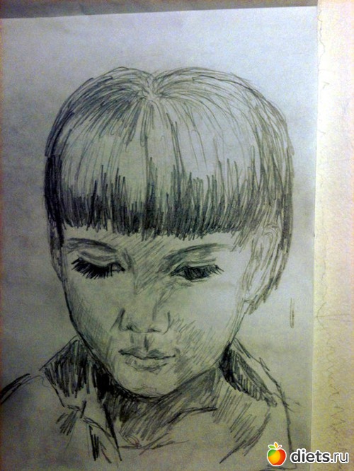 Карандаш- это все-таки мое любимое... Это сидя в постельке, после душа после трени ждала, когда все семейство вымоется и муж работу закончит )))