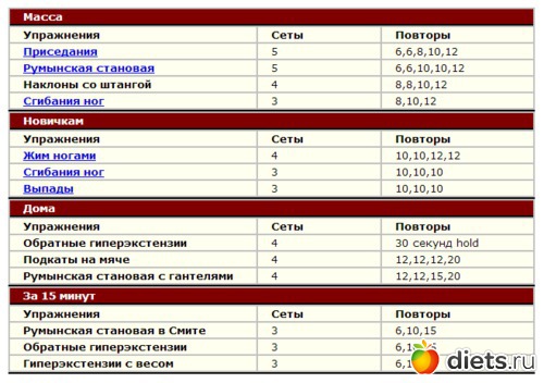 Таблица для занятий с упором на бицепс бедра. Укрепление и\или набор мышечной массы.