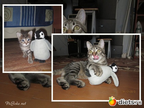 У нашего в детстве тоже была любимая мягкая игрушка, фиолетовый ослик, так он ее и борол, и жалел, и забавно таскал по квартире - под пузом