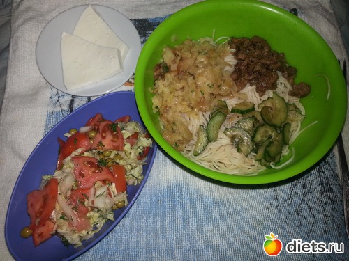 26,12,13 Обед Кукси, 2 ломтика брынзы, салат из пекинки сырой, помидора, горошка