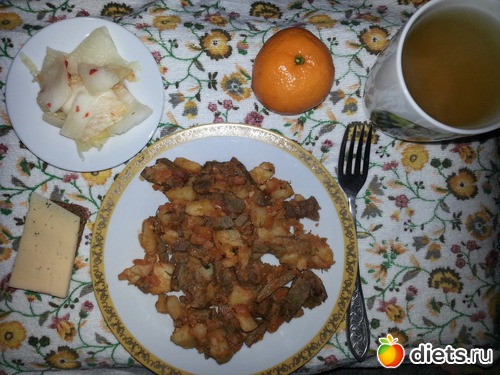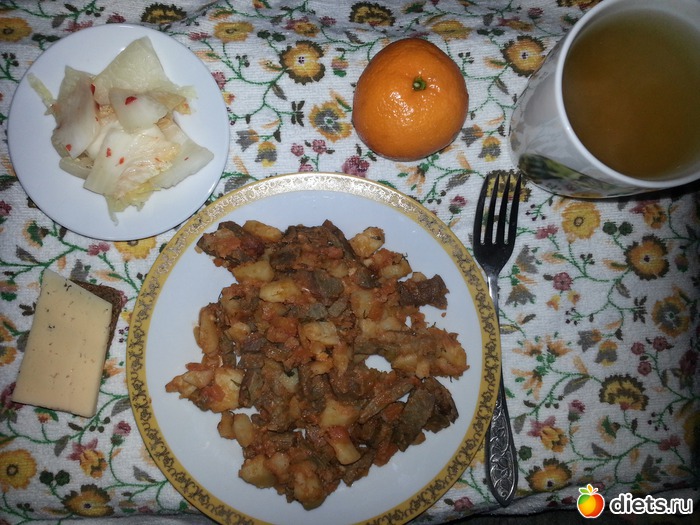 29,12,13 Обед Куырдак, чимчи, бутер с сыром, чай зелёный бс с имбирём и мятой, мандарин
