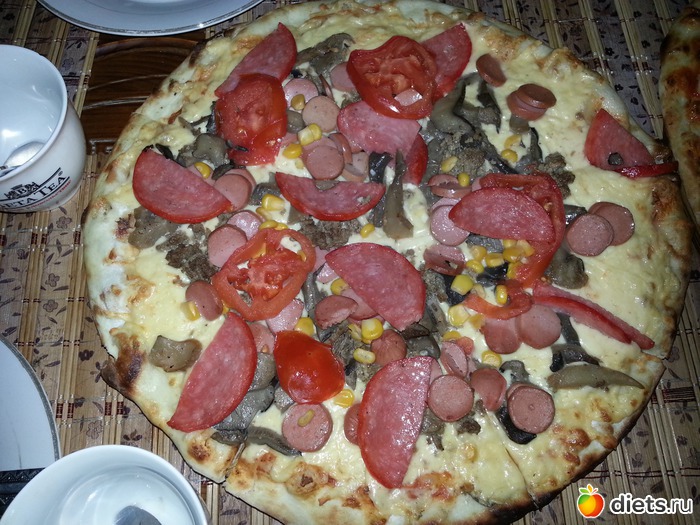 29,12,13 Ужин - гуляли, болтали, обменивались подарками с подругой... в Пицца-хаусе... Кто в мороз ходит в осеннем платьице, капронках даром что 70 дентовых и пуховике? Это я. Простыла и заболела. Балбеско( Пицца Ассорти 3 куска