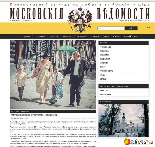 В России произошел курьез – православная газета "Московские ведомости" опубликовали статью "Американцы больше не получат русских детей", которую проиллюстрировали фотографией мэра Львова Андрея Садового с семьей.