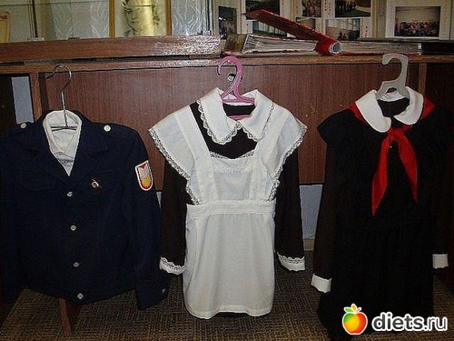 Чтобы хоть как-то разнообразить скучную форму, мамы и бабушки «отрывались» на воротничках и фартуках: их шили из тончайших кружев, импортного гипюра, вывязывали крючками, придумывали фасоны фартуков с «крылышками», с оборочками и т.д. Иногда встречались просто шедевры швейного хэнд-мэйда. Девочки старались украсить школьную одежду как могли: прикалывали броши, делали аппликации из кожи, вшивали бусины (правда, строгие учителя заставляли все это великолепие убрать, они же линейкой вымеряли и длину платья от коленки до кромки – не дай бог выше на миллиметр, чем положено по инструкции Минобразования).