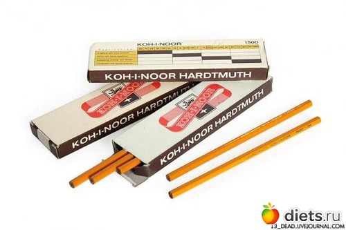 Это сейчас простые карандаши (мягкие и твердые) можно купить в любом отделе канцтоваров, а тогда лучшими карандашами считались чехословацкие Koh-i-noor. Их привозили из-за границы или доставали по блату в универмаге. Делались они, между прочим, из калифорнийского кедра (во всяком случае раньше). Сколько же мы сточили за время учебы этих желтых палочек с золотыми буковками и с золотыми пимпочками на кончике!