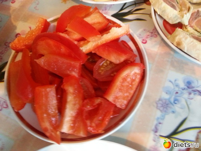слегка косоватые, зато муж делал!!!) и нарезала помидорки и перец болгарский.