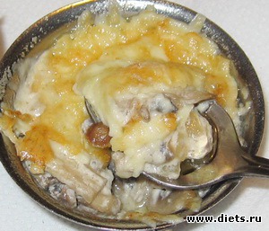 Ставим кокотницы на противень и отправляем в духовку до расплавления и легкого зарумянивания сыра.