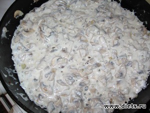 Добавляем в сковороду сметану, немного ее выпариваем.