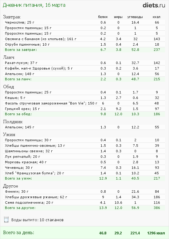 В общем вот что кушала: