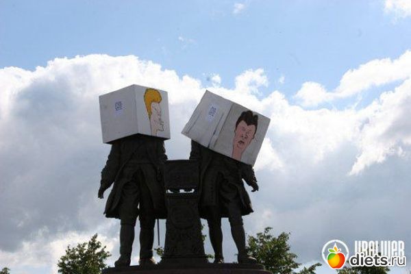 прозвали "Бивис и Батхед" . Лично я это "произведение искусства" называю Лёлек и Болек