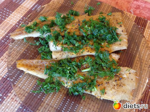 На завтрак был запечённый минтай, слегка посыпанный лимонным перцем. С укропчиком съелся за милую душу).