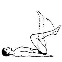 2. Руки вытянуты вдоль туловища. Подтяните колени к груди, затем выпрямите ноги и поднимите под прямым углом. Повторите это упражнение 10 раз.