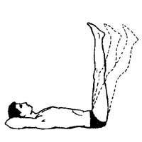 4. Поднимите прямые ноги вверх и энергично 10 раз сделайте упражнение "ножницы"