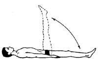 6. Снова ложитесь на спину, руки вдоль туловища. 3 раза медленно поднимите и опустите прямые ноги.