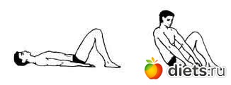 9. Снова согните ноги в коленях и садитесь, вытягивая руки то вправо и лечь, то влево и лечь. Повторить по 5 раз в каждую сторону.