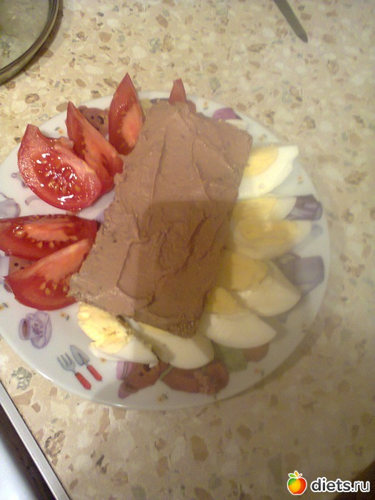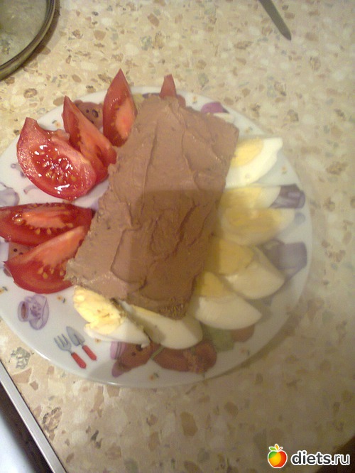 итак завтрак, яйки, помидорка, и хлебец с домашним паштетом