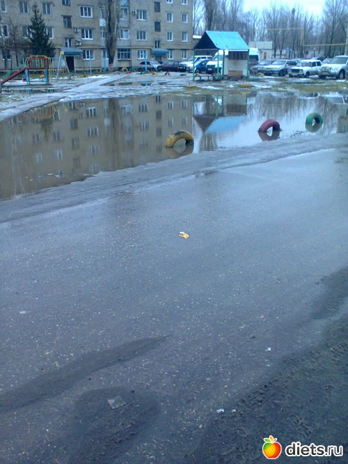 у нас такая же погода,правда нету луж таких и что там вдалеке,снег растаявший?