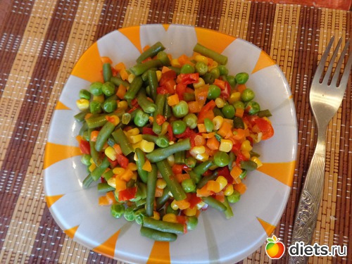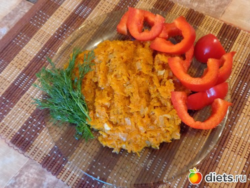 На завтрак была тушёная морковь с луком и специями, свежий болгарский перец и укроп. В общем-то вполне съедобно... Но очень хотелось мяски к этому блюду... Котлету...или тефтельку... Но пришлось довольствоваться тем, что положено)).