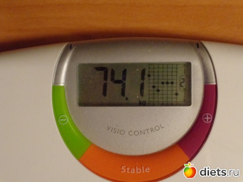 Утром взвесилась - 74,1кг. Честно говоря, была немного разочарована, ожидала больший результат. А тут всего минус 500 гр...