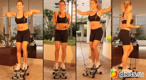 Отдельно стоит упомянуть о поворотном степпере. При работе на нем задействуется больше мышц. В рекламе продавцы даже утверждают, что благодаря занятиям на поворотном степпере вы дома сможете накачать идеальный пресс