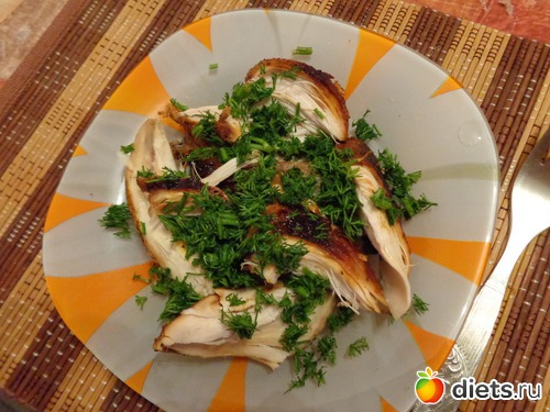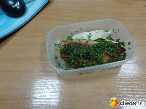 И дома на ужин опять всё та же запечёная курица и укроп. Эту порцию я тоже не смогла доесть.