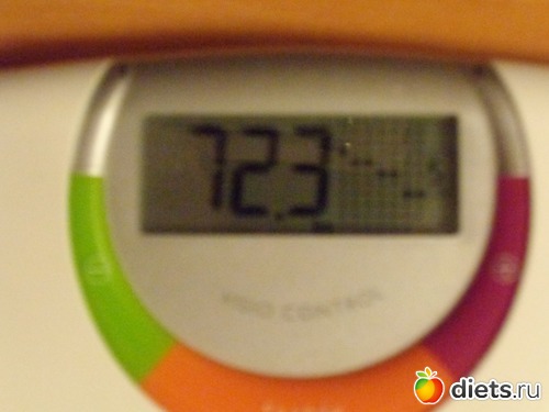 Начался он с приятного сюрприза. Встала на весы, а там после дня на курице минус килограмм! Фото не очень качественное получилось, но всё же размещаю. Почему-то думала, что на курице потеряю грамм 300 не больше, в общем была приятно удивлена).