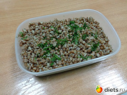 На обед, опять же на работе, - гречка, добавляла хмели-сунели и укроп. Вполне съедобно получилось.