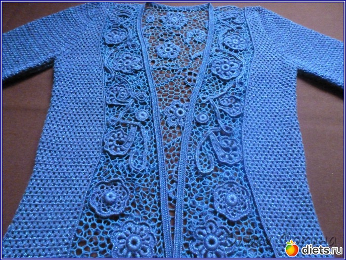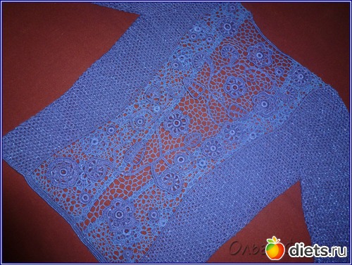 Для желающих есть и мастер-класс с пошаговым фото - в формате Word и PDF - 49 фото вязания в процессе,+схема узора рукавов и боковых вставок+выкройка, все фото с текстовым сопровождением, за чисто символическую плату... Мастер-класс даёт представление с чего начинать и как вязать нечто подобное, потому как не забываем, вязать можно на разные размеры, взять другую пряжу/метраж, связать любые понравившиеся мотивы, схемы которых предостаточно на просторах интернета, схемы которых побуждают рукодельницу выдумать по ходу вязания нечто своё, новое, и не похожее на других...