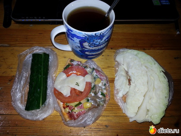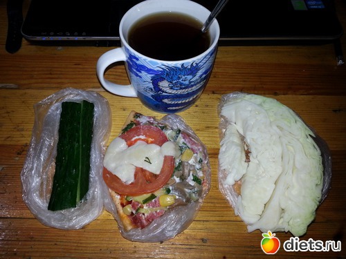 19,01,14 Перекус - кусок пиццы, капуста, огурец, кофе бс бм