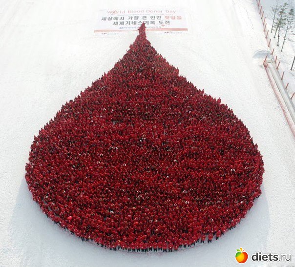 Более 3000 студентов в Южной Корее выстроились в форме капли крови для рекламной кампании по популяризации донорства от Красного Креста.