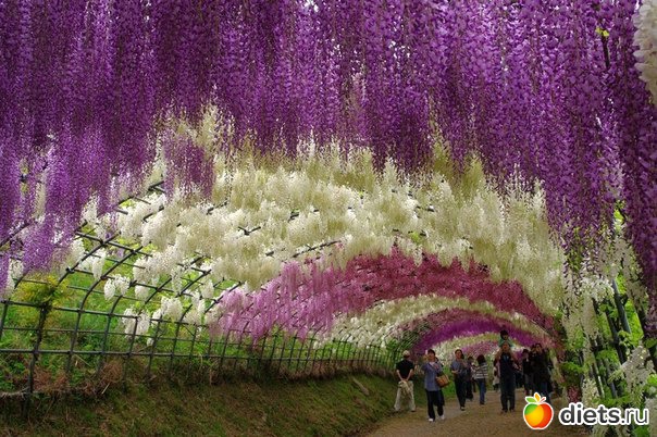Тоннель глициний в японском саду цветов Кавати Фудзи.