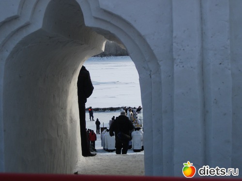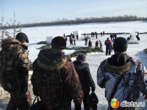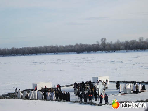 На заднем плане не праздные зеваки.это очередь к крещенской купели