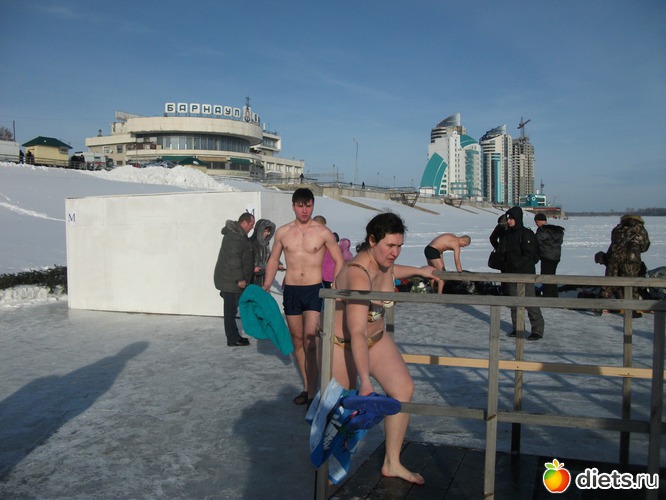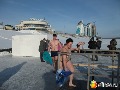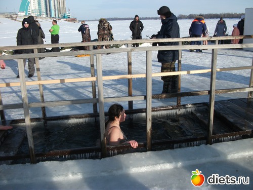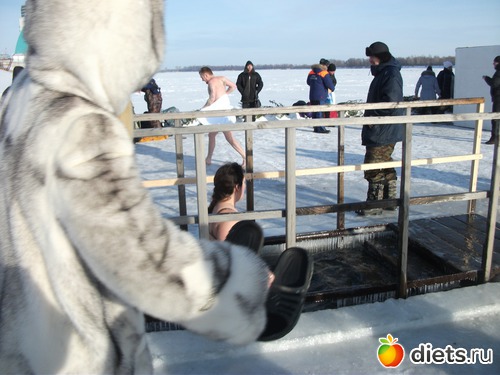 У меня муж вчера тоже первый раз искупался, и говорит, что обязательно нужно чтоб кто-нибудь встречал из проруби, чтоб помочь быстро одеться, а главное обуться, говорит ноги промерзают мгновенно. А уж оделся - я дома над ним угорала - майку наизнанку, трусы задом наперед, а они ж у них особенные, труселя то, так вот разделся смотрю не могу понять, что за странный рубчик-рисунок на попе