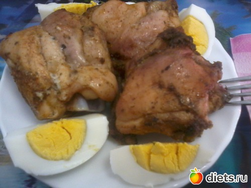 Обед: Окорочка - под шашлык. 1яичко и кофе с молоком...