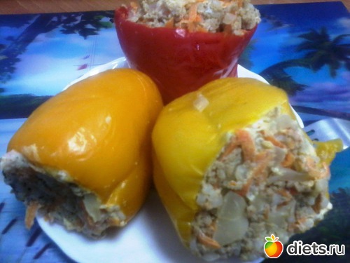 Обед: Перец фаршированный (начинка - фарш "идюшкин", лучок, морковочка, капусточка, яичко, соль -перец по вкусу)