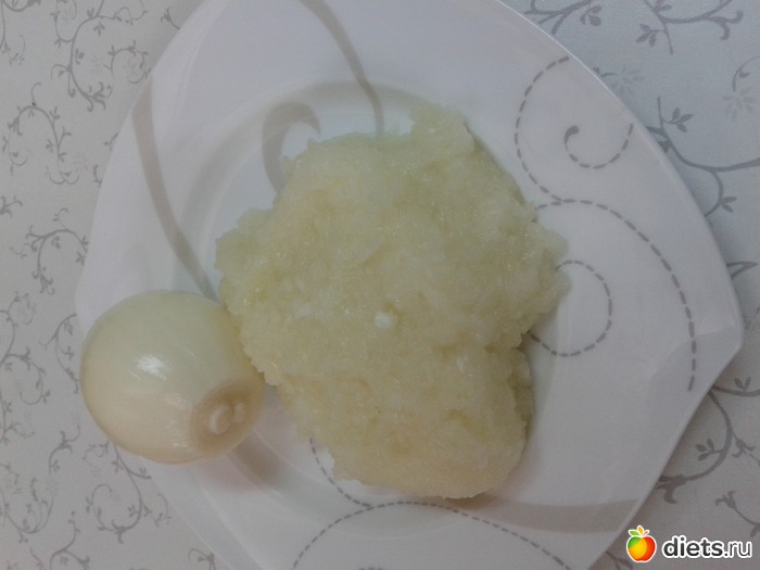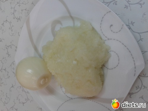 Режем лук мелкими кубиками ( по моему опыту котлеты получается более сочными, если лук измельчить блендером в кашицу!)
